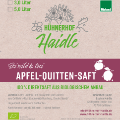 Eine 5l-Box Apfel-Quittensaft bekommst du bei uns für 12€, einfach bei uns am Hof vorbei kommen und holen, soviel du möchtest